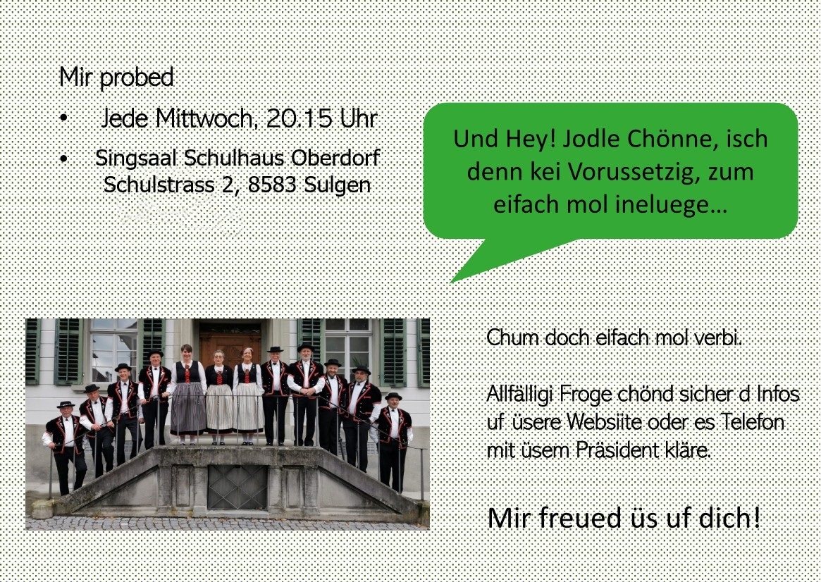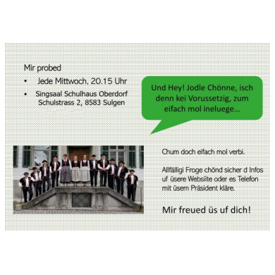 Wir suchen Sänger in jeder Stimmlage. Jodeln ist keine Voraussetzung!